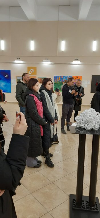 Особливу атмосферу гостьової лекції створила локація – зала Закарпатського музею народної архітектури та побуту. Лектор провів екскурсію виставкою, на якій було представлено роботи О.Аляб’євої, Ф.Бабинця, І.Бровдія, А.Воропая, А.Данилюк, С.Колодницького, О.Ляпіна, Л.Матіко, О.Мускура, М.Ониська, Р.Петричка, А.Пилюгіна, Т.Редько, В.Слокви, А.Тимченко, К.Туз, Л.Улибіної, О.Янович.