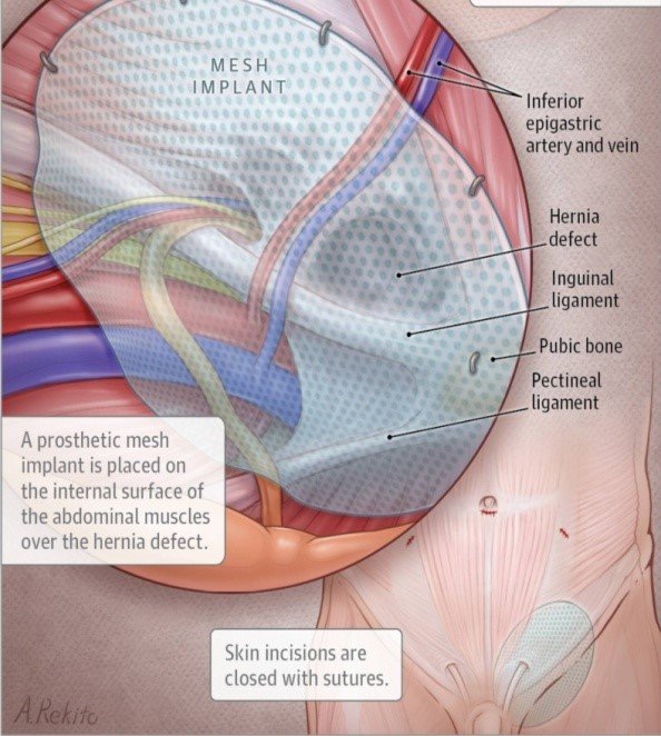Необхідно відзначити специфічні переваги лапароскопічної герніо алопластіки перед традиційними методами — це можливість огляду черевної порожнини, одночасне закриття трансплантатом усіх слабких місць передньої черевної стінки.