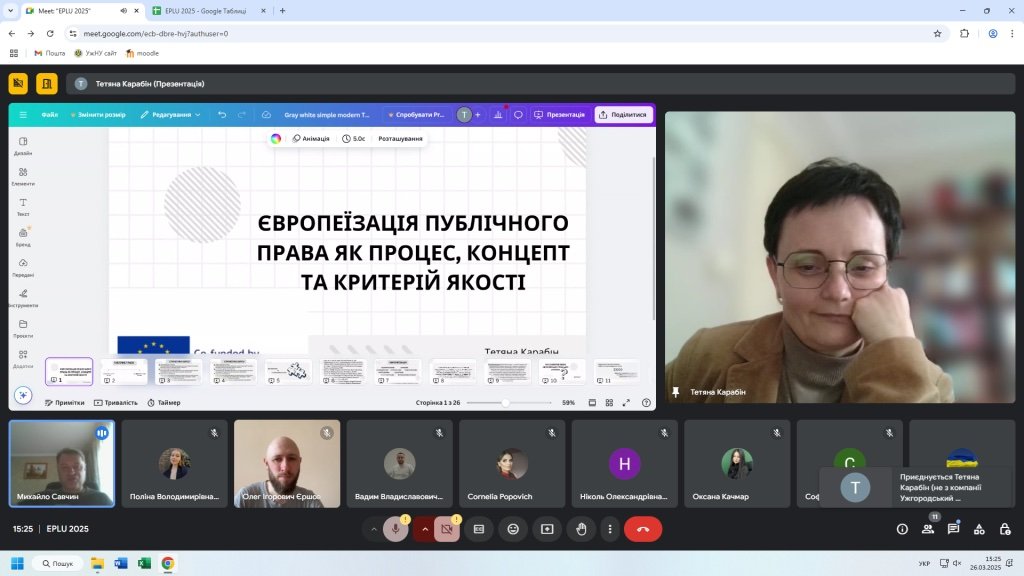 - Транскордонне співробітництво, що ілюструє здобувачам, як окремі інструменти можуть стати і стають частиною механізму європеїзації публічного права. Лектор: Ярослав ЛАЗУР.