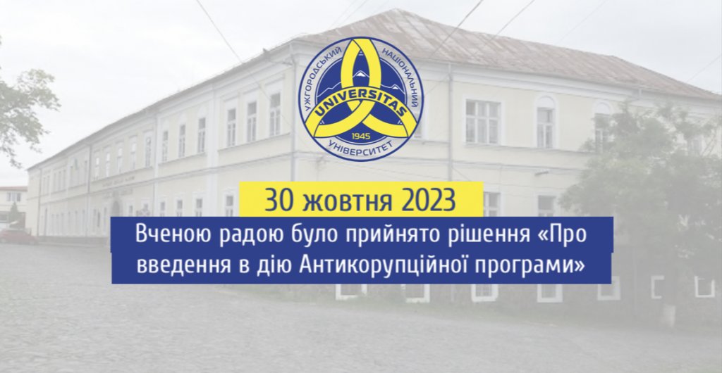 Спільними зусиллями команди проекту та юридичного відділу Ужну 30 жовтня 2023 Вченою радою було прийнято рішення «Про введення в дію Антикорупційної програми».