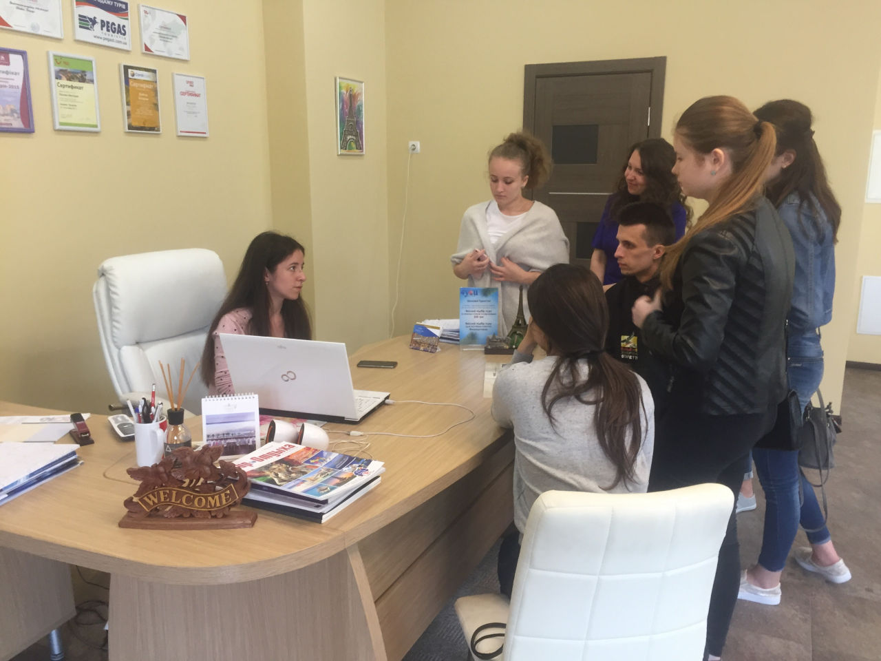Під час практики другокурсники факультету туризму та МК УжНУ завітали у провідні туристичні агенції Ужгорода «World 4you» (вул. Новака, 10) та «Jack Travel» (вул. Корзо, 3), де менеджери вказаних туристичних фірм (відповідно першої агенції – випускниця факультету туризму та МК УжНУ Богдана Василівна Добош та другої агенції – студентка заочної форми навчання факультету туризму та МК УжНУ Любов Василівна Олексій та випускниця спеціальності «Туризм» Природничо-гуманітарного коледжу УжНУ Ярина Вікторівна Пащук) детально пояснили організацію роботи з клієнтами турагенцій, підбір турів за кордон і по Україні, їхнє бронювання та обслуговування туристів протягом всієї туристичної подорожі.