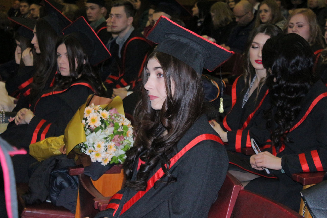Після привітань відбулась основна частина свята, до якої винуватці сьогоднішньої події йшли протягом 5,5 років – вручення дипломів магістрів випускникам економічного факультету. А дипломи сьогодні отримали: 69 студентів стаціонару (з яких 30 дипломів з відзнакою) та 85 студентів заочної форми навчання (з яких 30 дипломів з відзнакою). Опісля вручення всі традиційно радісно підкинули конфедератки для фото й отримали ще безліч щирих побажань від своїх рідних.