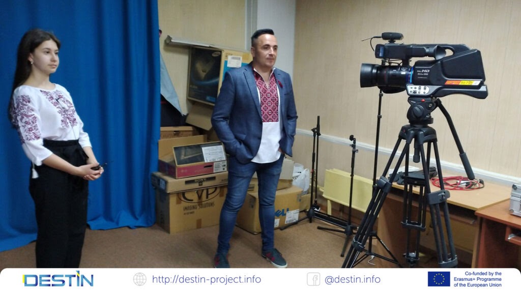 На початку Дня відкритих дверей завідувач кафедри, керівник проєкту від УжНУ Юрій Бідзіля привітав магістрантку Ольгу Богославську, яка посіла ІІ місце у Всеукраїнському конкурсі наукових студентських робіт. Затим доцентка кафедри, координаторка проєкту Галина Шаповалова презентувала найважливіші результати DESTIN, а також розповіла про його мету, завдання, учасників, зосередила увагу на оновлених навчальних планах та програмах для бакалаврів і магістрантів, назвала нові дисципліни, упроваджені після консультацій зі студентами, роботодавцями, випускниками. Відзначила, що у квітні УжНУ отримав техніку в межах проєкту. Окрім того, учасники робочих груп розробили Національні рекомендації для журналістської освіти, створили олайн-курс із медіаграмотності.