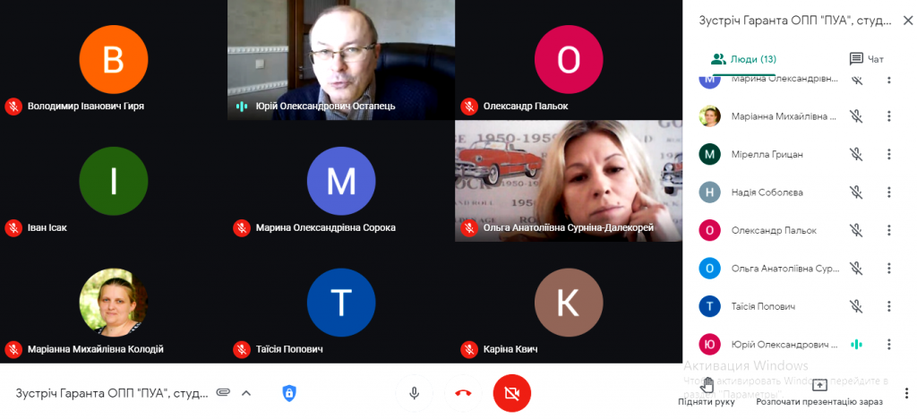 На зустрічі був присутній гарант ОПП «Публічне управління та адміністрування», декан ФСН, проф. Остапець Ю.О., який наголосив студентам на необхідності дотримання принципів академічної доброчесності при написанні наукових робіт, ознайомив з особовим складом кафедральної комісії із запобігання академічному плагіату при написанні кваліфікаційних робіт.
