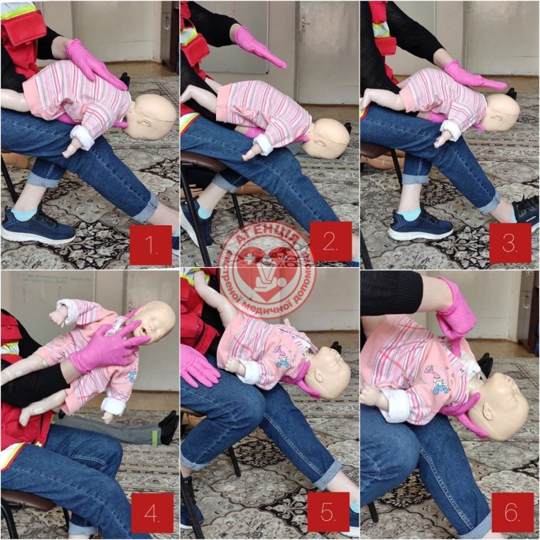 Зверніть увагу: якщо постукування по спині не дало ефекту, натискайте на грудну клітку до 5 разів у дітей до 1 року!!!