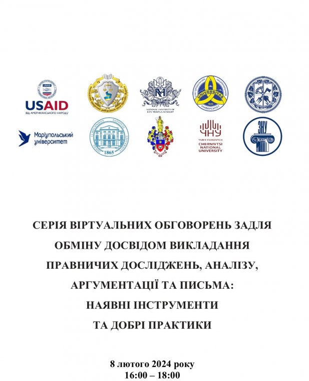 8 лютого відбувся онлайн-захід «Серія віртуальних обговорень задля обміну досвідом викладання правничих досліджень, аналізу, аргументації та письма: наявні інструменти та добрі практики».