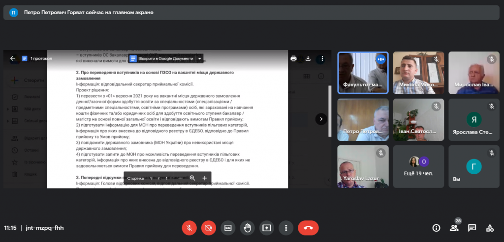 Попередні підсумки першого етапу вступної кампанії обговорювала Приймальна комісія УжНУ