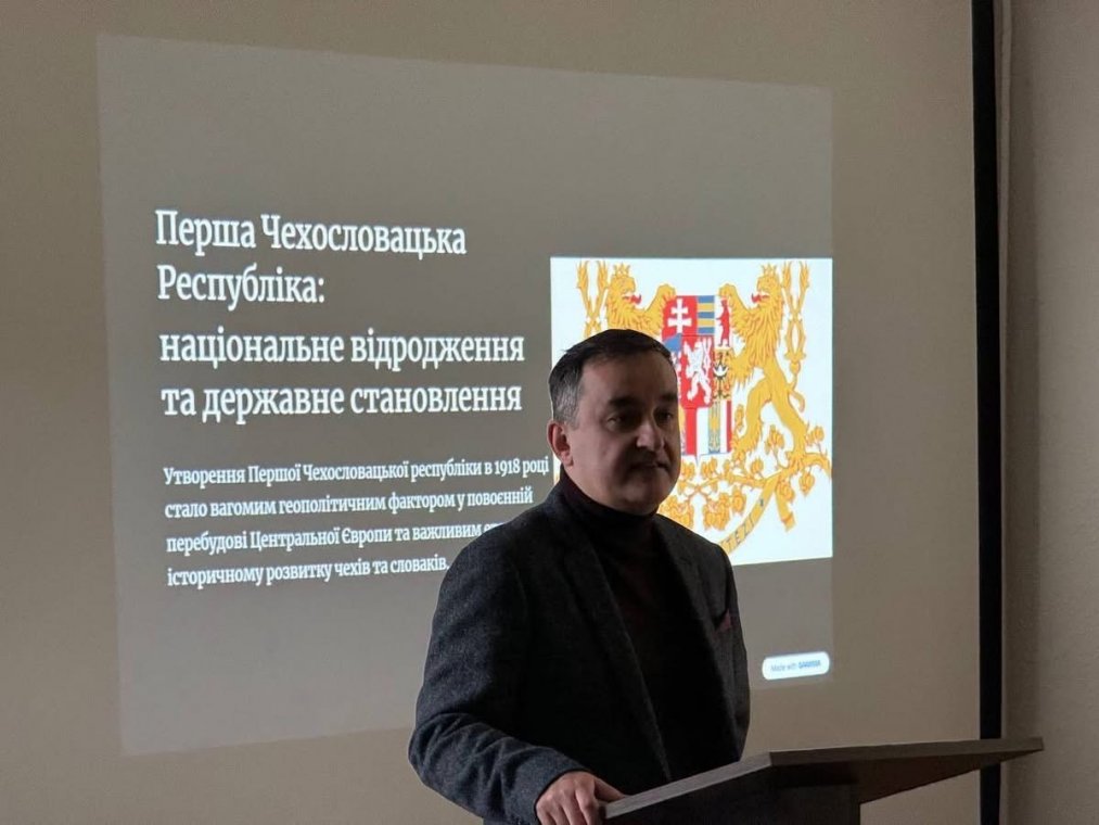 Просвітницький захід складався з двох частин. У першій частині завідувач кафедри доц. Ігор Шніцер прочитав студентам тематичну лекцію, у якій висвітлив історичні передумови, обставини та наслідки утворення Першої Чехословацької республіки. Лектор звернув особливу увагу на міжнародний контекст подій 1918 року, роль чехословацького національного руху та значення створення нової держави для народів Центральної Європи.