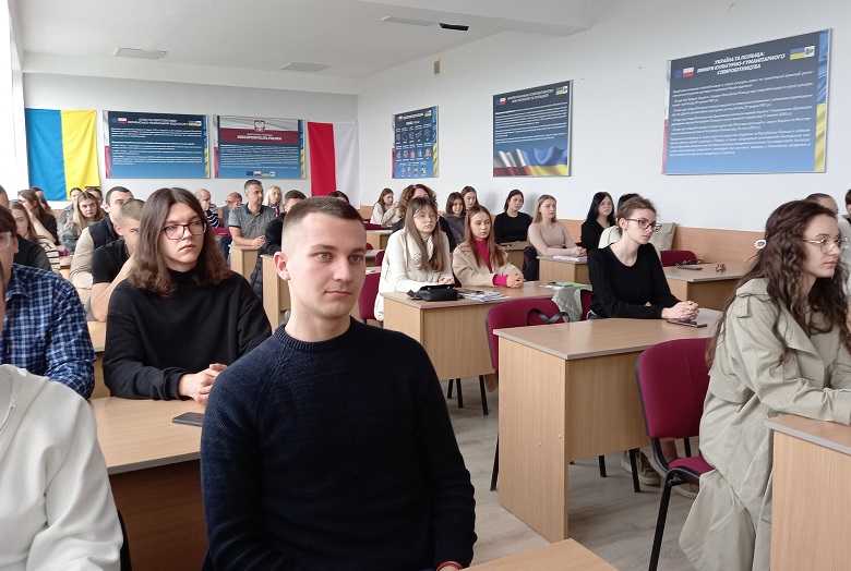 На початку заходу виступила представниця університету Бориса Грінченка, доцент, кандидат політичних наук – Ганна Андріївна Лавриненко. У своїй доповіді вона обговорила права та свободи громадян України під час воєнного стану. «Для збереження демократичної держави важливо дотримуватися певних норм прав і свобод», - підкреслила спікерка.