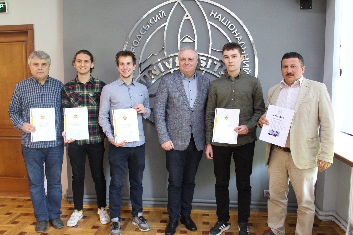 Розпочали засідання з приємного – ректор УжНУ Володимир Смоланка вручив причетним почесні відзнаки від Ради територіальних громад Закарпаття та грамоти за підготовку студентів й участь у Чемпіонатах з програмування. Фото з вручення за посиланням.