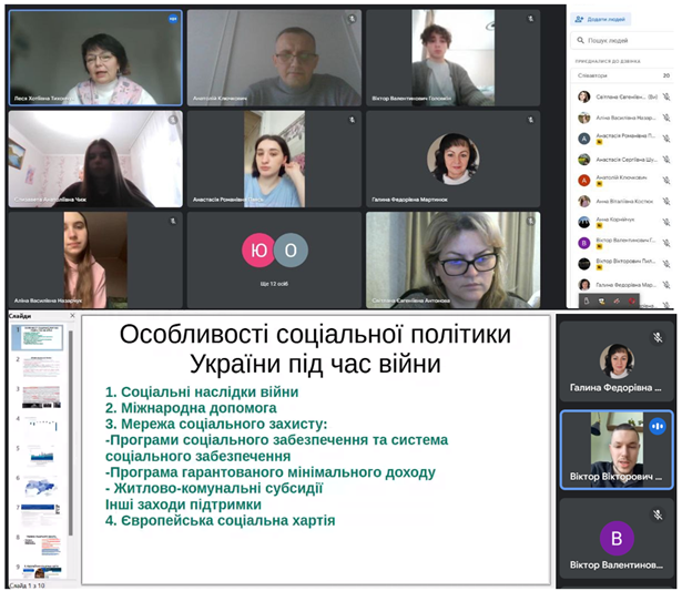 16 лютого 2024 року відбувалася спільна лекція для студентів Ужгородського національного університету та Національного університету водного господарства та природокористування (м. Рівне) на тему «Особливості соціальної політики під час війни».