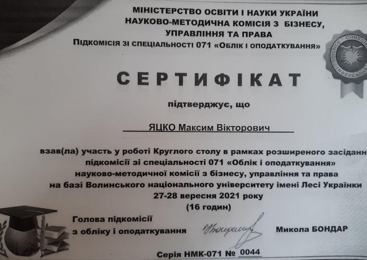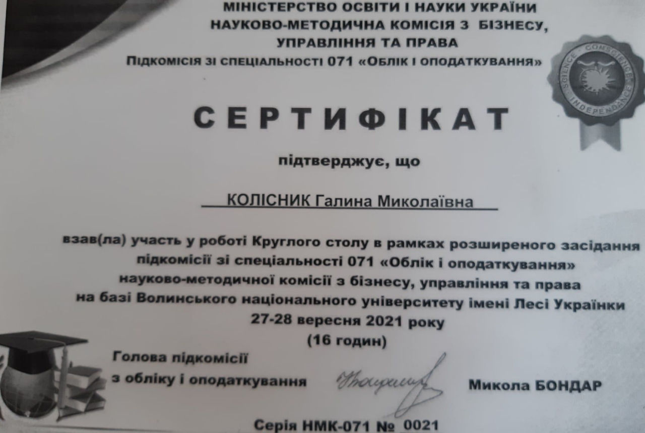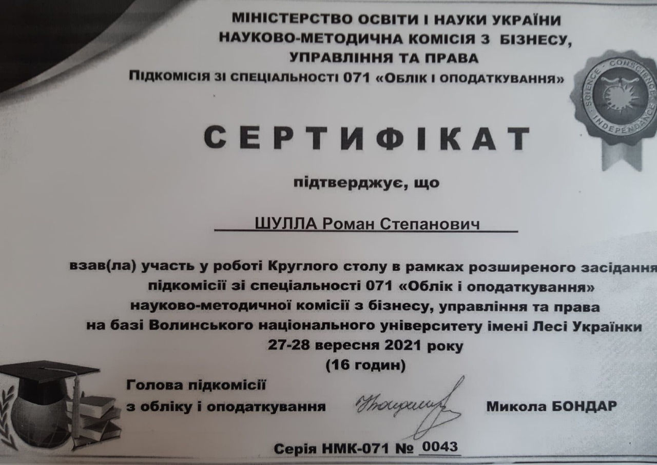 Участь у розширеному засіданні підкомісії з обліку і оподаткування взяли участь завідувач кафедри обліку і аудиту д.е.н проф. Г. М. Колісник, к.е.н доц. Левкулич В. В., к.е.н. доц. Шулла Р. С., к.е.н. доц. Яцко М. В. Учасники розширеного засідання підкомісії з обліку і оподаткування отримали сертифікати про участь у роботі Круглого столу.
