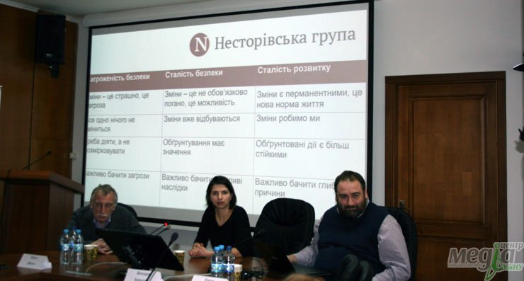 Днями до нашого університету завітали представники Несторівської групи, аби поділитися своїм баченням розвитку України. Представляли групові напрацювання політолог, засновник експертної компанії pro.mova Євген Глібовицький; політолог, головний редактор видання «Збруч» Орест Друль та соціолог, фахівець із досліджень цінностей Вікторія Бриндза. Захід відбувся у залі Вченої ради УжНУ.