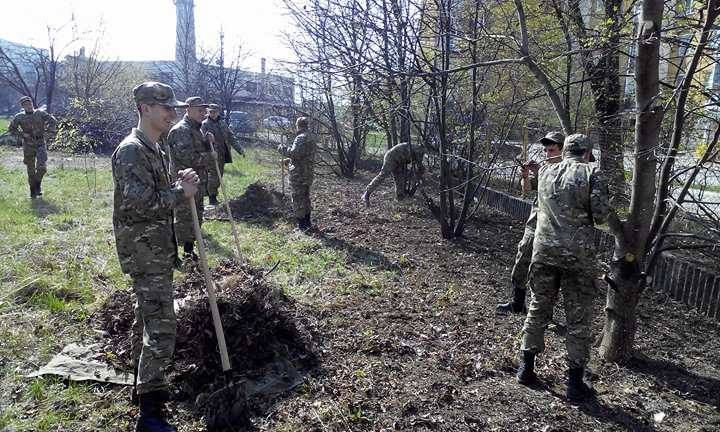 Небайдужими до акції були і студенти кафедри військової підготовки. Напередодні студенти другого курсу здійснювали підготовку території університету для облаштування місць проведення практичних занять з військової підготовки.