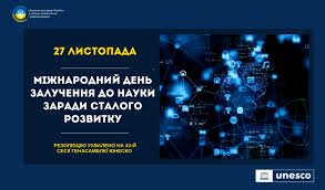 На 43-й сесії Генеральної конференції ЮНЕСКО, що проходила в місті Самарканд (Узбекистан), було ухвалено резолюцію про встановлення 27 листопада Міжнародного дня залучення до науки заради сталого розвитку. Ініціатива належить Україні та стала результатом багаторічної системної роботи у сфері розвитку науки й міжнародної співпраці.