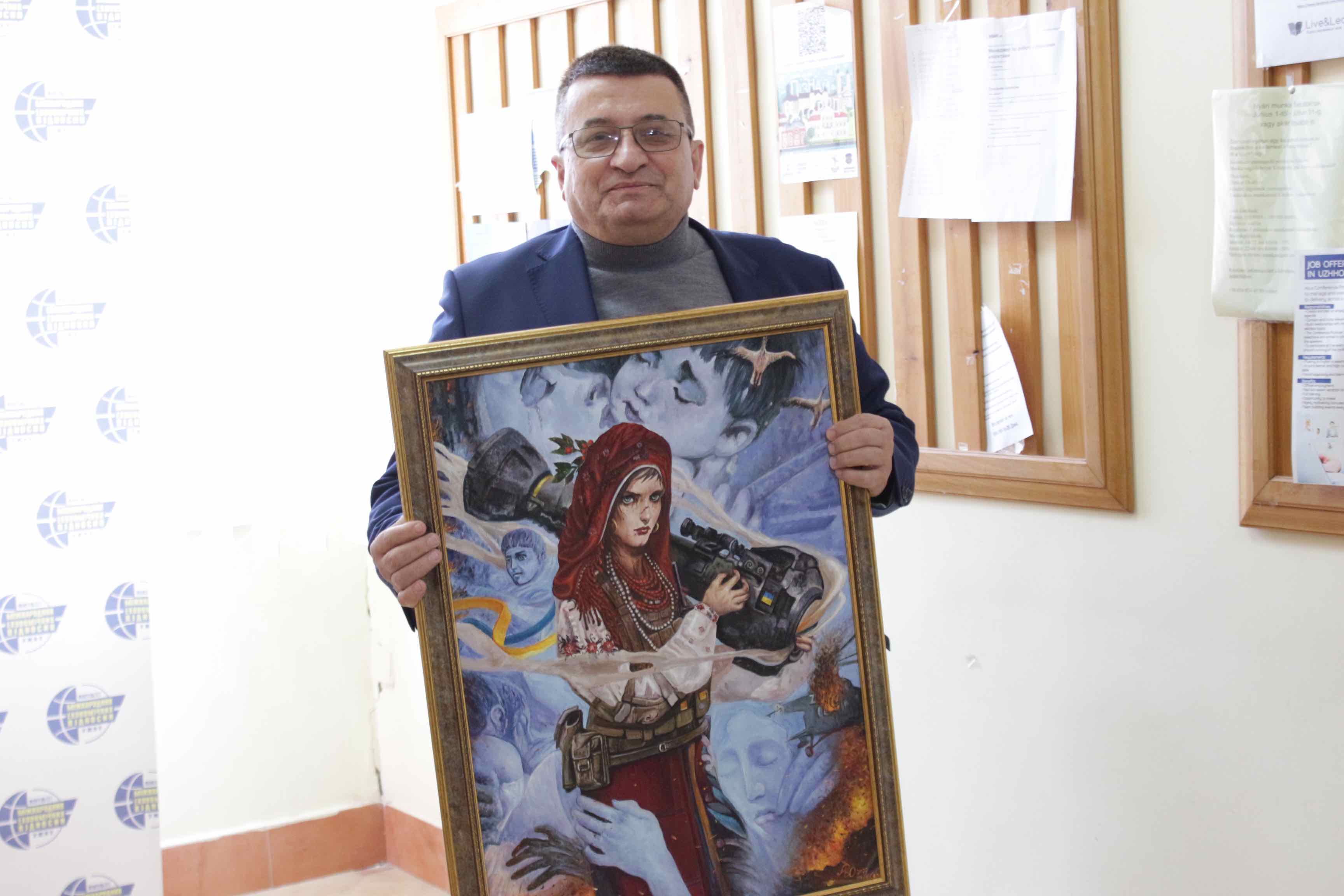 Микола Палінчак презентував картину «Маріуполь», яку подарував голова асоціації випускників факультету Василь Молдавчук. «Картина була придбана на аукціоні, який був організований для збору коштів для купівлі авто для українських військових. Василь Молдавчук придбав її та подарував своєму рідному факультетові» - розповів Микола Палінчак.