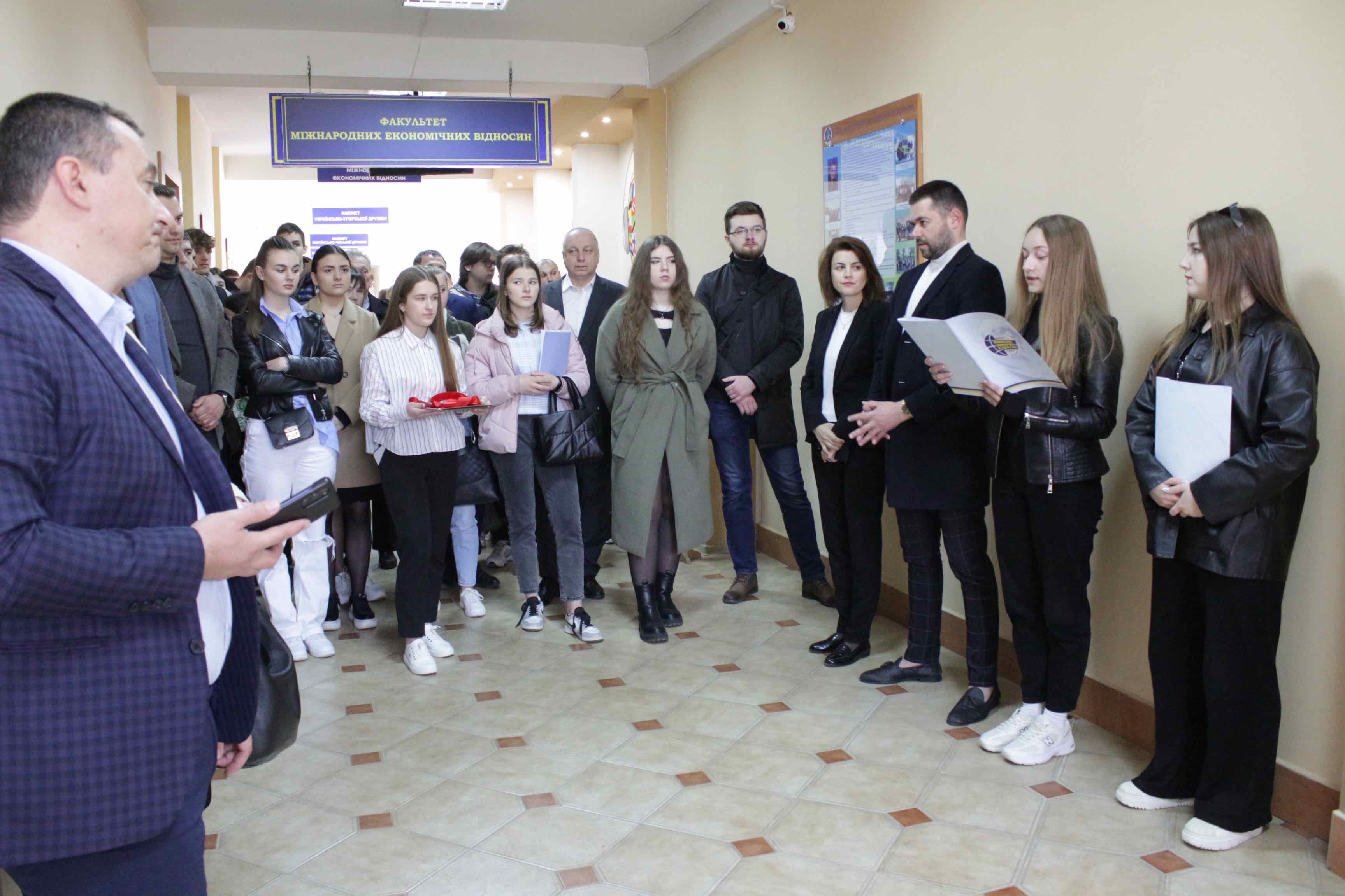 У рамках святкування 25 річниці факультету міжнародних економічних відносин відбулося відкриття скульптури «Обійми». Автором арт-об’єкту є Сергій Можневський, ужгородець, який вже більше 20 років живе в Канаді. Урочисто відкрили мистецький твір ректор УжНУ, професор Володимир Смоланка, декан факультету міжнародних економічних відносин Микола Палінчак, професор Іоан Горка (Університет м.Орадеа, Румунія, професор Людмила Ліпкова (Братиславський економічний університет, Словаччина).