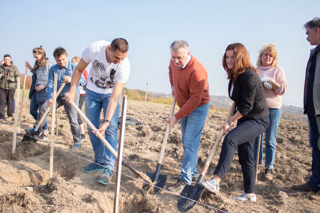 На площі майже в півгектара цього дня було висаджено перші 150 кущів двох європейських сортів винограду - Совіньйон Блан та Черсегі Фюзелеш. Однак, перш ніж висаджувати виноград працівникам біологічного факультету та проректору з адміністративно-господарської роботи Дмитру Соймі довелося докласти чимало зусиль. Земля, на якій від нині буде розташований навчально-науковий виробничий центр УжНУ, знаходиться в урочищі Деренівка, де кілька десятиліть функціонує університетська обсерваторія, і вирощуванням жодних культур тут ніколи не займалися.
