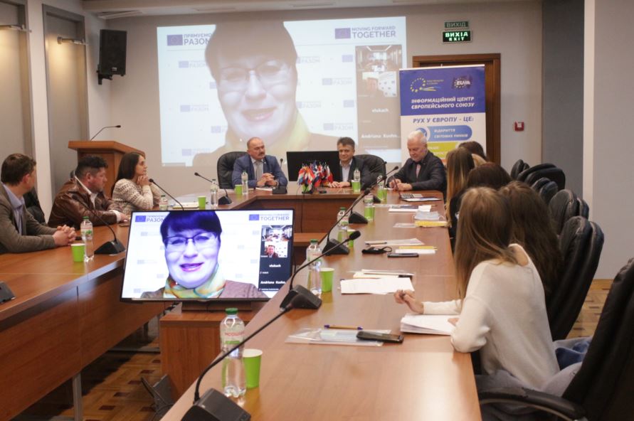 У четвер, 4 листопада розпочалася практична частина «Дня кар’єри ЄС» у форматі тренінгів. Доцент кафедри міжнародних студій та суспільних комунікацій Ганна Мелеганич провела тренінг «Конфлікти: сутність, типи, етапи та способи управління». Доцент, кар’єрний консультант, директор Центру кар’єри УжНУ Тетяна Бутурлакіна провела тренінг «Кар’єрна траєкторія: як написати власний сценарій професійного розвитку».