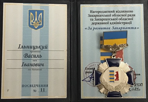 Василь Ільницький нагороджений відзнакою «За розвиток Закарпаття»