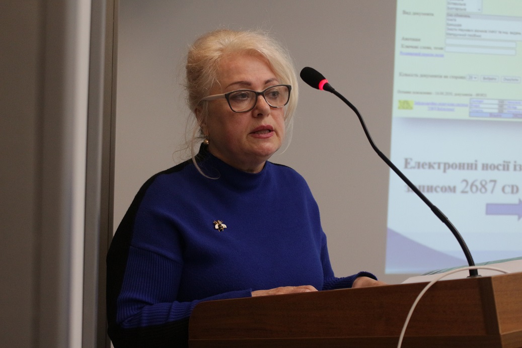 Насамперед розглянули комунікативне перезавантаження бібліотеки в період карантинних обмежень: досвід роботи за 2021 рік. Доповідала директор Наукової бібліотеки Марія Медведь: «Після введення в дію розпорядження про перехід навчання в УжНУ в дистанційну форму, віртуальна комунікація стала можливою завдяки платформам Zoom та Moodle. Бібліотека університету теж зуміла протистояти виклику карантинних обмежень, оскільки завчасно подбала про можливість надавати свої послуги дистанційно. Нову стратегію роботи бібліотеки ми назвали комунікативним перезавантаженням. Його основою стали дистанційні послуги університетської бібліотеки. Передусім це перегляд наявних видань (або електронних аналогів) у книгозбірні через електронний каталог, в якому відображено посилання на електронний формат навчальної літератури. Також отримання довідки чи консультації від працівників бібліотеки в режимі реального часу (чат, телефон, е-пошта, сторінки бібліотеки в соцмережах). Ще одною важливою послугою карантинного періоду стала електронна доставка документів. Ця сервісна послуга надає можливість користувачам отримати електронні копії повних текстів або фрагментів друкованих видань із фондів бібліотеки та репозитарію УжНУ».