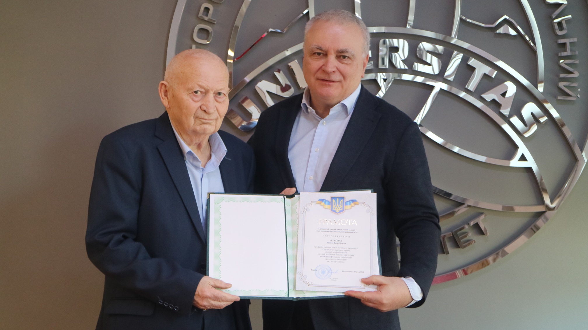 Насамперед ректор УжНУ Володимир Смоланка вручив грамоти та дипломи про здобуття вчених звань. Фото з вручення за посиланням.