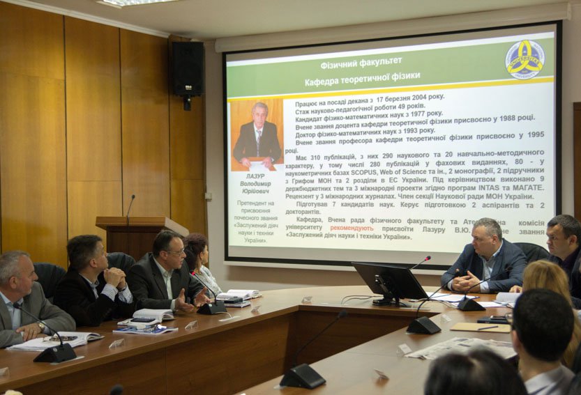 До початку засідання грамотою нагородили директора Природничо-гуманітарного коледжу ДВНЗ «УжНУ» Володимира Росоху з нагоди 60-річчя та за особливі заслуги в реалізації державної політики в галузі національної освіти та науки.