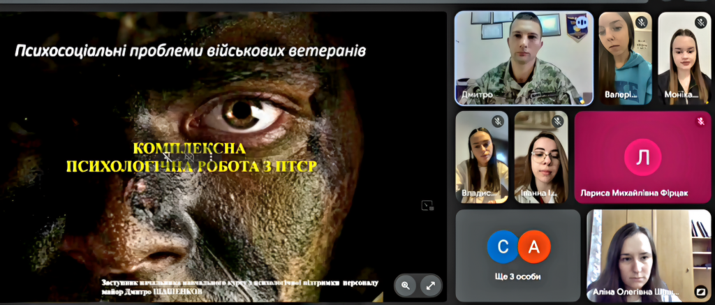 12.02.2026р. студенти освітньо-професійної програми «Клінічна психологія» стали учасниками науково-практичного вебінару на тему: «Комплексна психологічна допомога при ПТСР», проведеного кандидатом психологічних наук, учасником бойових дій та діючим військовим Шашенковим Дмитром Михайловичем.
