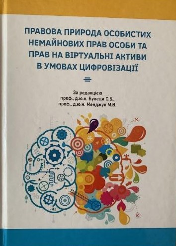 – Правова природа особистих немайнових прав особи та прав на віртуальні активи в умовах цифровізації: монографія / за редакцією проф., д.ю.н. Булеци С.Б., проф., д.ю.н. Менджул М.В. Ужгород: РІК-У, 2023. 272 с. ISBN 978-617-8276-54-6