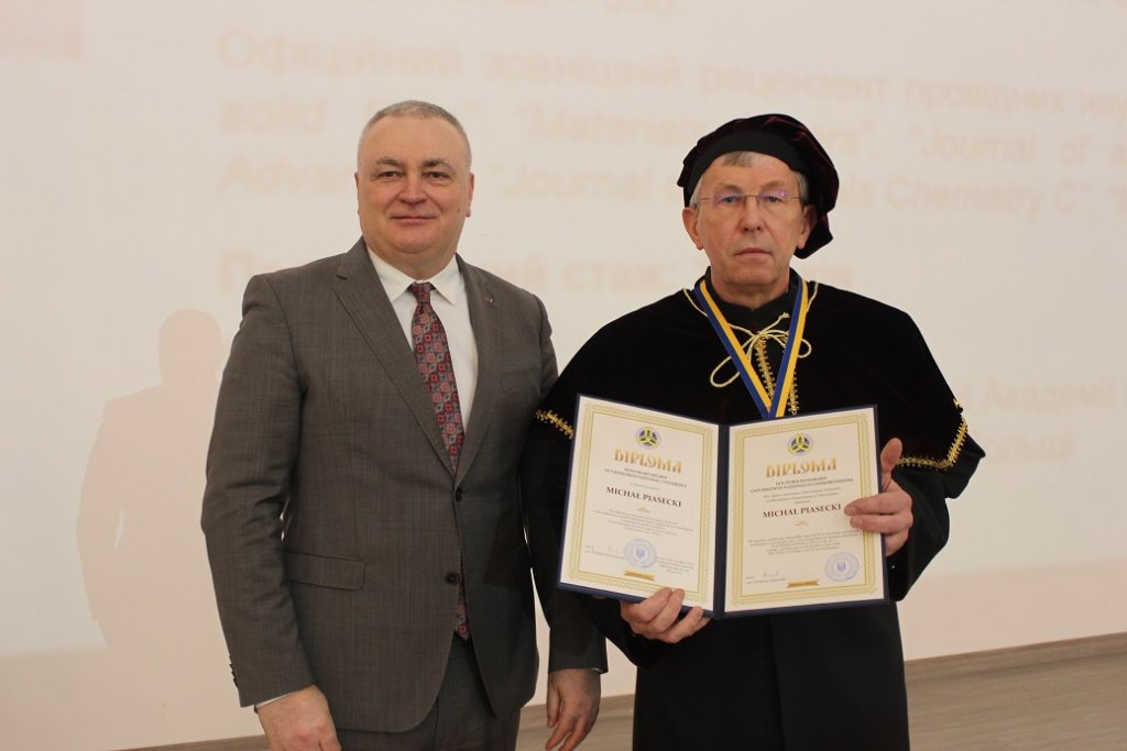У вівторок, 21 грудня, на засіданні Вченої ради УжНУ, відзнаку «Почесний доктор ДВНЗ «Ужгородський національний університет» вручили завідувачу кафедри теоретичної фізики Університету ім. Яна Длугоша, м. Ченстохова (Польща) Міхалу П’ясецкі.