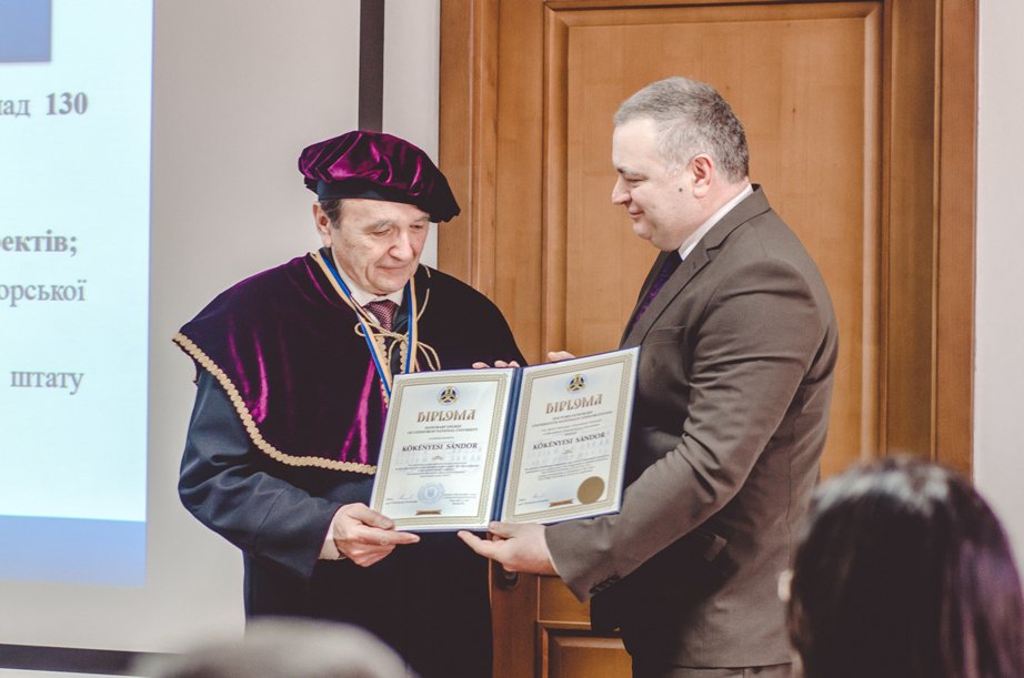 «Виражаючи всю свою глибоку повагу, ми гідно оцінюємо діяльність пана професора Шандора Кокенєші з багатьох сторін: як видатного науковця, заслуженого фізика, випускника Ужгородського національного університету та нашого великого друга» - сказав під час церемонії присвоєння вченого звання Почесного доктора УжНУ проректор університету професор Ігор Студеняк.
