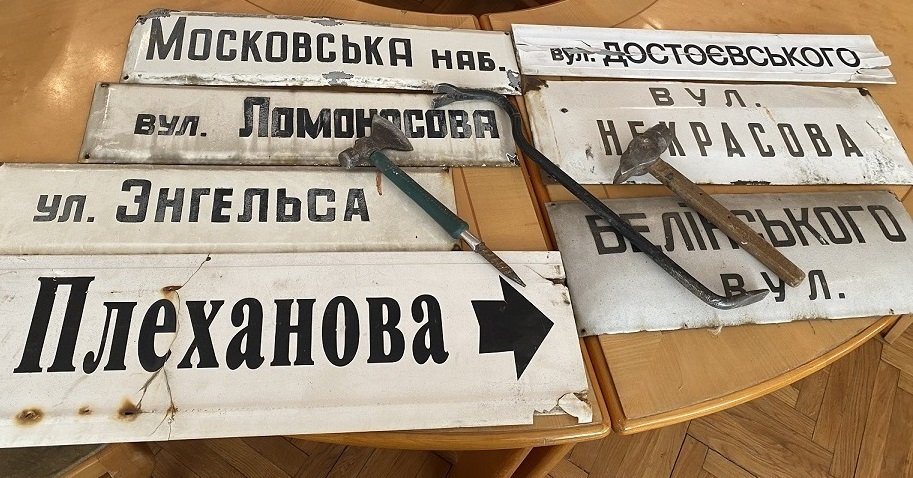 Працівники Ужгородський національного університету з перших днів російського повномасштабного вторгнення активно включились в різні сфери громадської діяльності. З-поміж іншого звернули увагу на те, що чимало маркерів країни-агресора знаходяться поруч з нами – коли гуляємо парком чи набережною, прямуємо додому чи їздимо в справах. Йдеться про численні пам’ятники, які підлягають демонтуванню у зв’язку з процесом декомунізації в Україні, а також старі вивіски на честь радянських діячів та подій, часто російською мовою, на вулицях, які давно є перейменованими. Важливо, що свої дії активісти узгодили з міським керівництвом. Прецедентом стало демонтування меморіальної плити, встановленої до 300-річчя "возз'єднання" України та Росії в Боздоському парку. Після цього подібної участі зазнали ще три монументи, а також вже близько десятка вивісок з назвами вулиць. Проте таких «знахідок» криється в нашому місті, та й по всій Україні, ще багато.