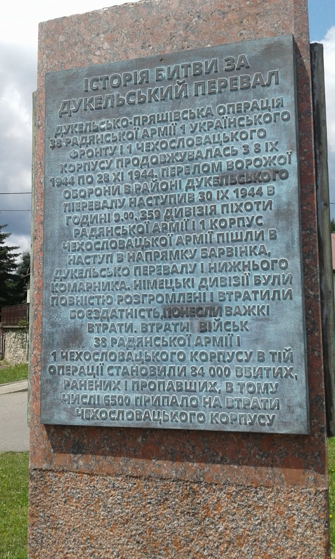На обеліскові у польському містечку Дукля я бачив такий напис: «Втрати військ 38-ї радянської армії і 1-го Чехословацького корпусу в тій операції становили 84 тисячі вбитих, поранених і безвісти зниклих, в тому числі 6 500 припало на втрати Чехословацького корпусу». Зрозуміло, що значна частина втрат корпусу – сини і доньки Срібної землі. За властивими для нашого краю прізвищами, викарбуваними на могильних плитах меморіального комплексу на Дукельському перевалі за Вишнім Комарніком, можна складати карту населених пунктів Закарпаття…